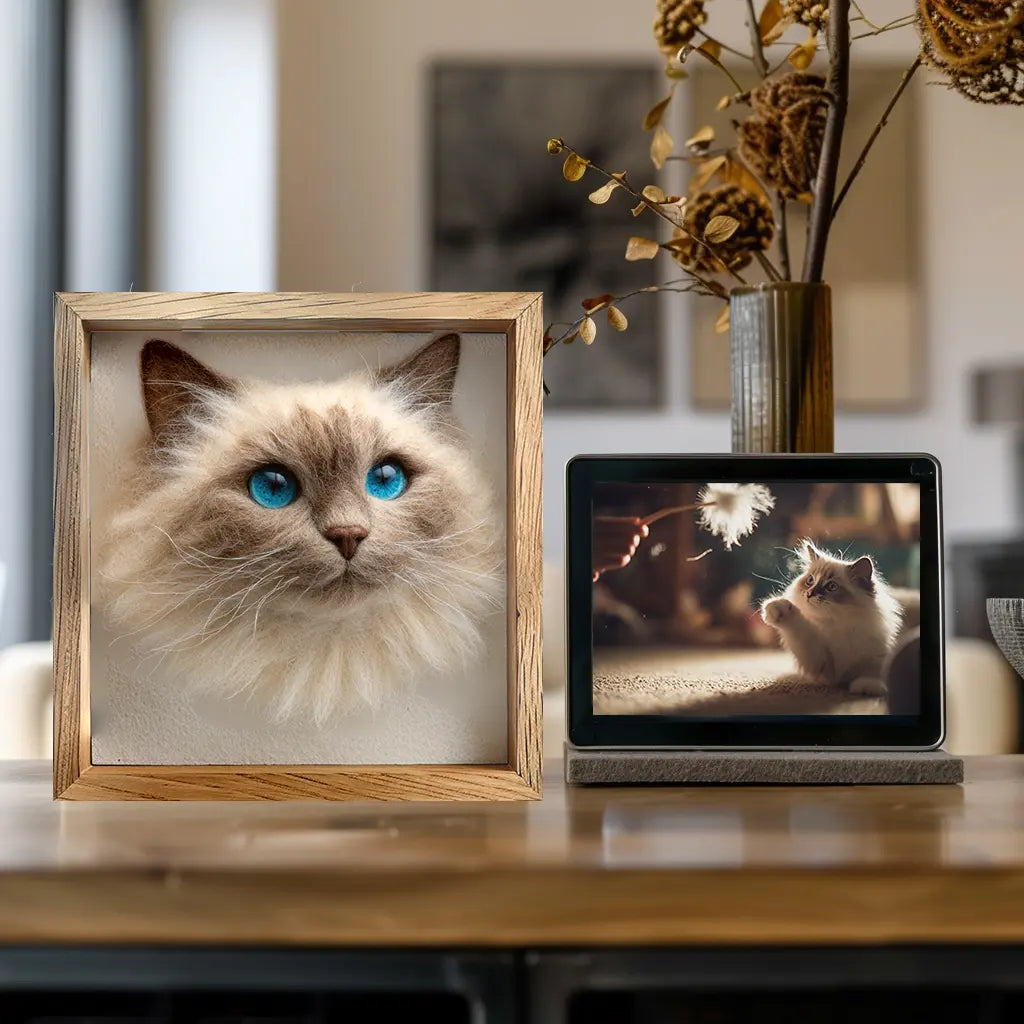 A substantial, 25cm full-body figurine, meticulously handcrafted to capture your pet's signature pose in premium natural wool. This detailed needle-felted art piece preserves your companion's unique size, spirit, and distinguishing features—from the spark in their eyes to the curve of their paws. A timeless tribute meant to be cherished for generations.